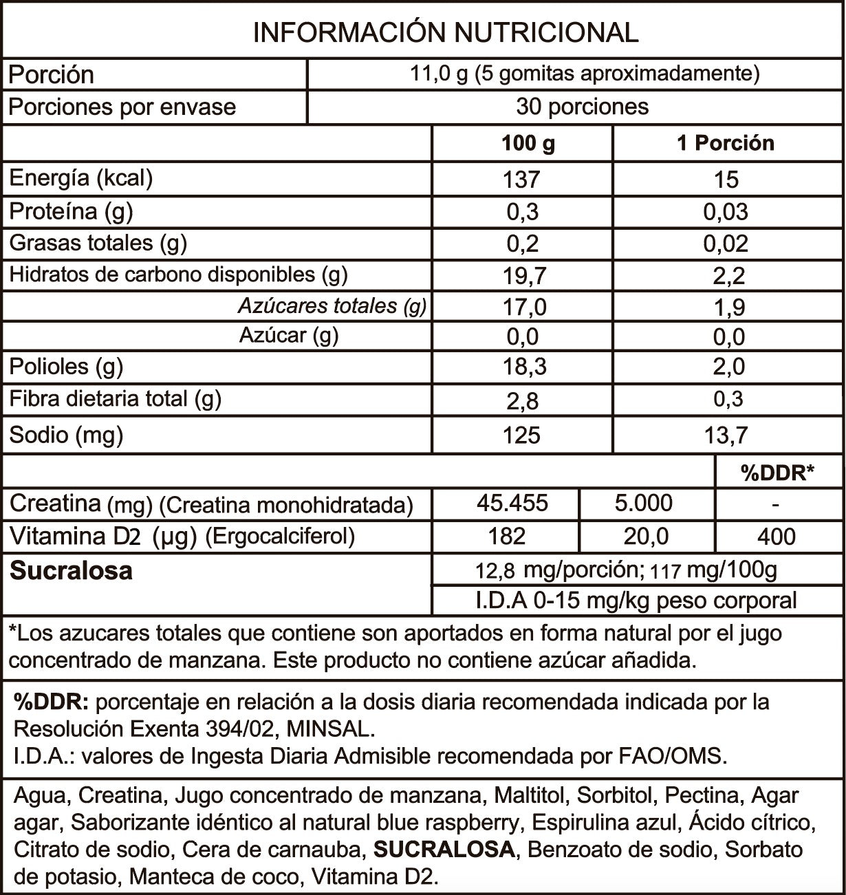 Cada gomita contiene 1 gramo de creatina